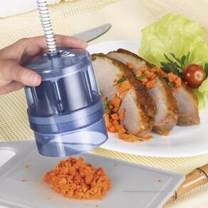 Além disso, o Processador De Alimento Manual Bate Pik também pode amaciar carnes, tornando o preparo de bifes ainda mais fácil. Basta bater suavemente no alimento para obter a maciez desejada.