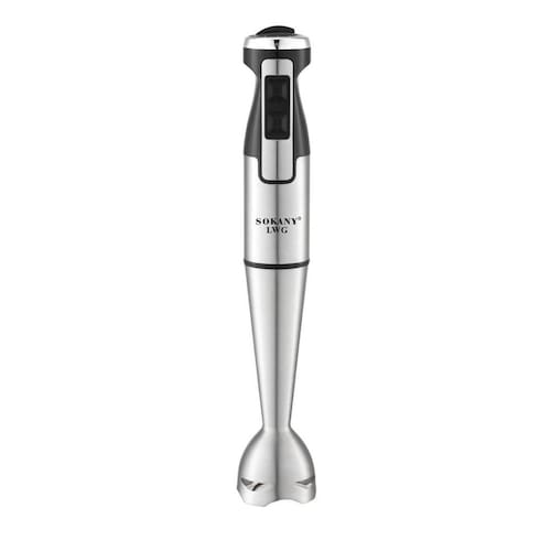 Mixer de mão portátil com 1000W de potência, 4 lâminas e ajuste de nível de velocidade. Design moderno e compacto.