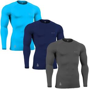 Kit C/ 3 Camisas de Compressão Térmica Stigli Pro Proteção Solar FPU50+ Manga Longa Poliamida - P - AZUL MARINHO