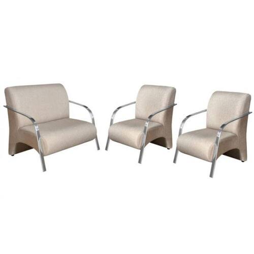 Conjunto Poltronas Venus Braços em Alumínio 1 Namoradeira 2 de um Lugar Escritório Suede - bege
