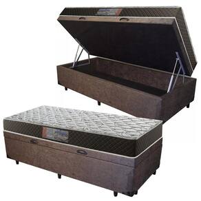 Cama Box Baú Solteiro Colchão Mola Bonnel Acolchões + Box Suede 61x88x188 - Marrom