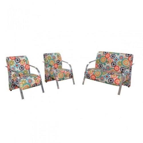 Conjunto Poltrona Decorativa Venus Braço Alumínio kit 3 peças