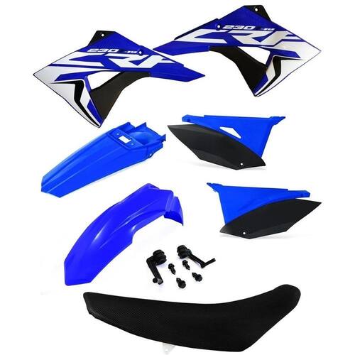 Kit Plástico Biker Next Crf 230 Adesivos E Banco Avtec - Cores: Azul / Preto - Banco Preto