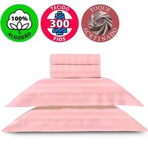 Jogo De Cama Queen 300 Fios 100% Algodão 4 Peças - Rosa