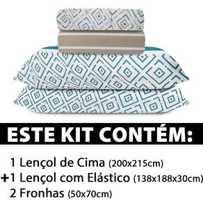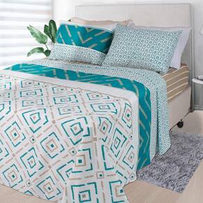 Jogo de Cama Lençol 4 Peças Casal Com Elástico Estampado 138x188x30cm - BF Colchões - Azul turquesa