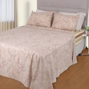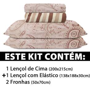 Jogo de Cama Lençol 4 Peças Casal Com Elástico Estampado 138x188x30cm - BF Colchões - Bege