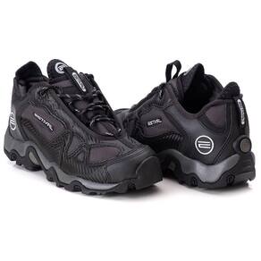Fechamento em atacador com gorgorões e ilhoses que garantem ajuste ideal. Solado em borracha e entressola em EVA com sistema FlexMotion.