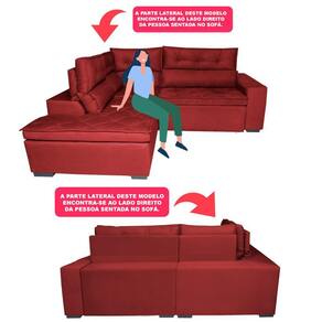 ATENÇÃO PARA A POSIÇÃO DO SOFÁ: olhando ele de frente, a chaise fica na esquerda, sentado no sofá a chaise fica na direita.