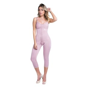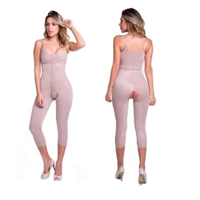 Macaquinho Modelador Longo Pós Cirúrgico Alta Compressão Prótese Silicone Abdominoplastia Lipoaspiração Abdômen Flancos - Bege - P