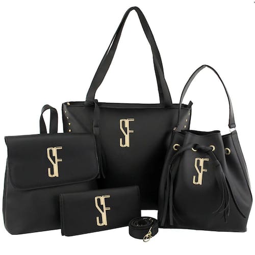 Kit é composto por 1(uma) bolsa grande, 1(uma) bolsa "saco", 1(uma) mochila e 1(uma) carteira.