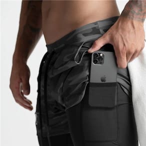 Os shorts 2 em 1 da Hupana equilibram conforto e cobertura com uma camada externa de tecido leve com tecnologia Dry Fit e bermuda de compressão interna em Spandex com um bolso oculto para telefone. O abertura lateral suave permite um treino versátil com liberdade de movimentos.