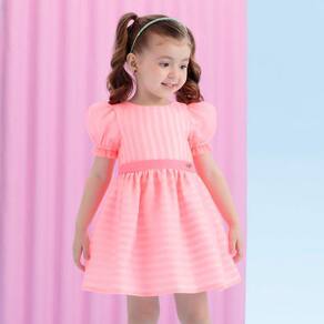 Vestido de sobreposição de organza rosa neon, com manga estilo bufante, fofa, com acabamento em babadinho de elástico, gola redondo, saia rodada com sobreposição de organza laranja neon.Cinto na mesma cor integrado na peça.Abertura e fechamento em zíper.Ideal para ocasiões, festas, aniversários e muito mais.100% PoliésterInformações: - Não Deixar de molho. - Lavar do avesso.- Não esfregar sobre o aplique e ou bordado.- Secar em varal.- Não passar ferro sobre o aplique e ou bordado.- Retirar os acessórios para lavar.