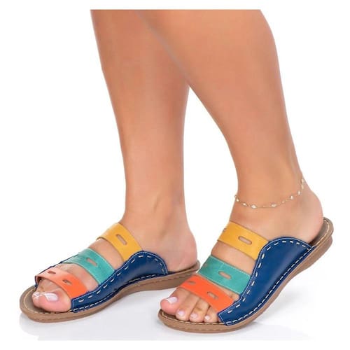 Sandália Rasteirinha Feminina Em Couro Rasteira Confortável Colorida - 38 - Azul Petróleo