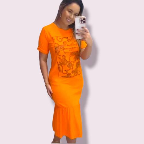 Vestido Midi Savana – Terracota Não possui bojo Gola redonda Fendas laterais Parte de trás maior que a da frente Tecido: Algodão Tamanho Único Veste do 38 até o 42