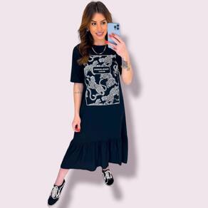 Modelo medido fora do corpo e sem esticar Medida: Busto 98cm Comprimento 103cm Comprimento Manga 27cm Modelo usou tamanho único