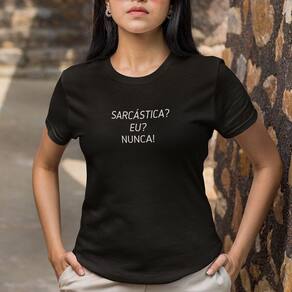Camiseta Feminina Sarcástica, Eu? Nunca Frase Fun Baby Look - Preto - P