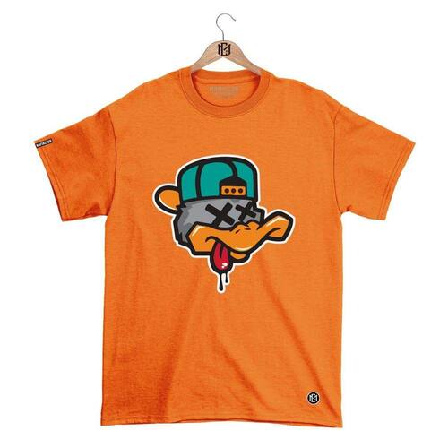 Camiseta Mafiaclub Gola Redonda Estampa PATO X Streetwear fio 30.1 Penteado - Laranja - G