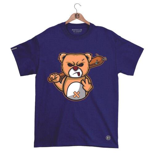 Camiseta Máfiaclub Gola Redonda Estampa URSO BRABO Streetwear fio 30.1 Penteado. - Azul Petróleo - G