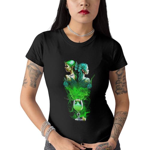 Camiseta Feminina Preta Drink Absinto Brisa Fadas Verdes