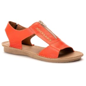 Sandália Rasteirinha Feminina Em Couro Rasteira Confortável - 39 - Laranja