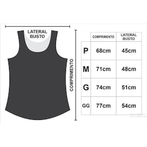 GG: Circunferência do Busto: 708cm / Comprimento: 77cm;