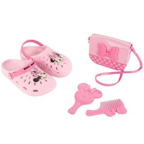 Para o lançamento Disney Beauty Bag trazemos um combo de moda super delicado e conectado com a personagem mais amada, a Minnie. Para o produto um modelo de conforto, leveza e versatilidade no uso. O destaque na babuche fica por conta do rosto da personagem sendo diferentes no pé direito e esquerdo. Junto uma mini bag, com laço volumétrico da Minnie, além de um lindo espelho personalizado com o rosto da personagem e pente exclusivo com orelhinhas e lacinho.
