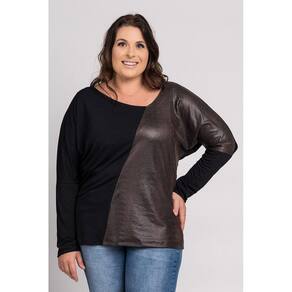 Blusa feminina elaborada em visco. Peça com boa elasticidade, leve, macia. Possui detalhe de tecido suede estampado em animal print, na parte da frente e parte da manga morcego. Aquela peça cheia de estilo na hora de compor looks seja para aquele passeio, trabalho, etc. Use-a como destaque do look ou sobrepostas, com seu jeans favorito, aquele blazer, de dia ou a noite use a imaginação e arraze!