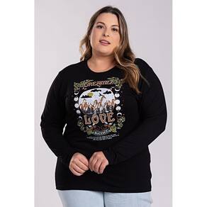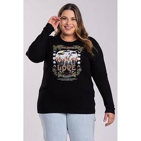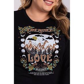 Blusa Feminina Manga Longa Plus Size Visco Confort Estampada "Dreamer Love" Boa Elasticidade