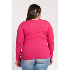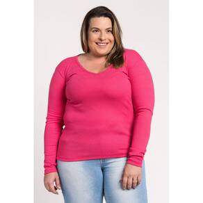 Blusa Manga Longa Ribana Canelada Decote "V" - Serena - Rosa - G2