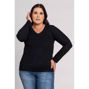Blusa Feminina Manga Longa Plus Size Visco Gola "V" - Ki Beleza - Preto - G1