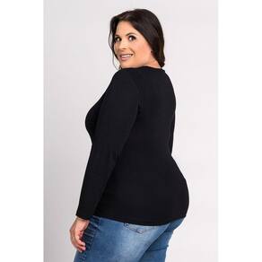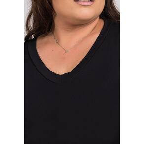 Blusa Feminina Manga Longa Plus Size Visco Gola "V" - Ki Beleza - Preto - G3