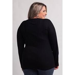 Blusa Feminina Plus Size Manga Longa Ribana Canelada 2x1 - KiBeleza - Preto - G1