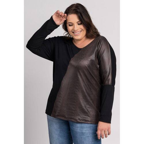 Blusa feminina elaborada em visco. Peça com boa elasticidade, leve, macia. Possui detalhe de tecido suede estampado em animal print, na parte da frente e parte da manga morcego. Aquela peça cheia de estilo na hora de compor looks seja para aquele passeio, trabalho, etc. Use-a como destaque do look ou sobrepostas, com seu jeans favorito, aquele blazer, de dia ou a noite use a imaginação e arraze!
