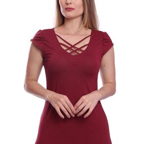 Vestido Cigana Feminino Manga Curta Evangélico com Detalhes - Vinho - G