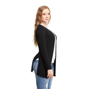Blusa de Frio Cardigan Manga Longa com Fenda Ca3 - Preto - M