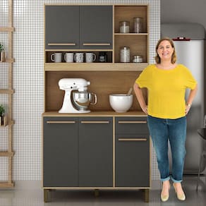 Armário de Cozinha 5 Portas 1 Gaveta e Nichos Ametista Valdemóveis - Grafite