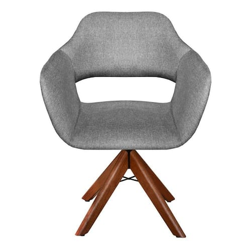 Poltrona Zara Cadeira Giratória Pé Madeira Decoração Sala Escritório - Cinza