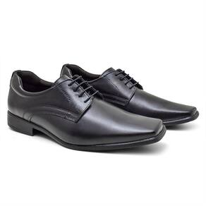 Sapato Social Preto 100% Couro Conforto Masculino Cadarço Reuniao Elegante Fork - 20 - Preto
