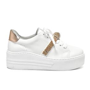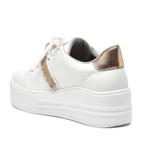 Casual não precisa significar comum. Mantenha o visual despojado, mas mude com o estilo atual deste tênis flatform solado alto com tira em strass. O cabedal branco com detalhe em laço dourado deixa seus pés lindos, confortáveis e estilosos para enfrentar o que o dia trouxer pela frente. Forma padrão com fecho de cadarço o destaque desse modelo está sobre o pé, onde uma tira revestida com Strass envolve de forma elegante, trazendo um brilho sofisticado ao tênis. Além disso, um nó como detalhe confere um charme adicional ao calçado. Seja para um passeio casual ou para complementar um look moderno, o tênis Via Marte oferece a combinação perfeita entre estilo e conforto. Sinta-se confiante e estilosa a cada passo com esse modelo que vai elevar o seu visual a outro nível.