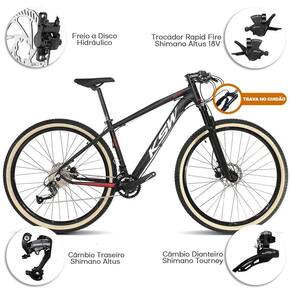 Bicicleta aro 29 KSW 18 velocidades Câmbio Shimano Altus Trava Guidão - Cor: Preto+Vermelho+Branco | Tamanho: 19