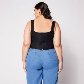 Blusa Cropped de Alça Plus com Aro em V e Bojo - Preto - Único