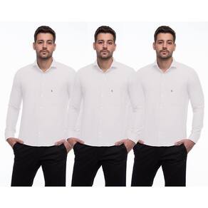 Camisa Social Masculina Manga Longa Lisa Punhos Kit 3 - Branco - P