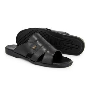 Sandália Masculina Couro Confortável Calce Fácil Clássica - 38 - Preto
