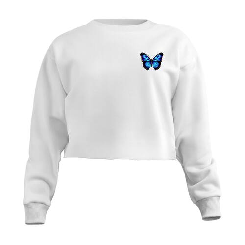 Blusa Cropped Moletom Borboleta Feminino Personalizado com Cintura Descosturada - Branco - GG