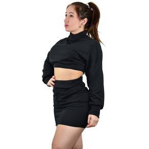 Saia De Moletinho Curta + Blusinha Moleton Feminino - Preto - GG