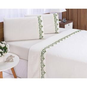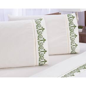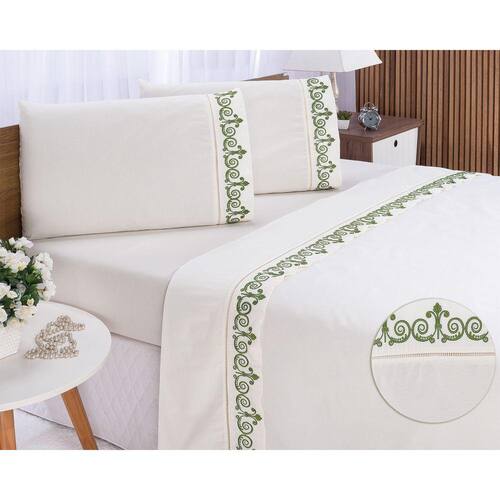 Jogo lençol Atenas quarto casal padrão bordado 4 peças 2fronha - verde musgo