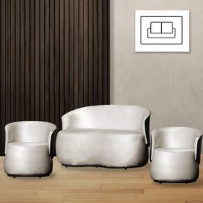 Kit 2 Poltronas e 1 Namoradeira Orgânica Beatriz Veludo Composê Corino Preto - Estopar - Bege