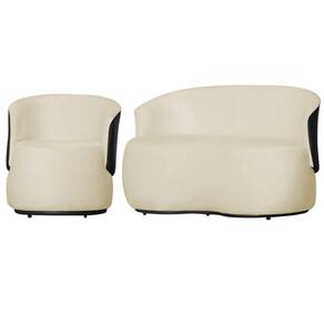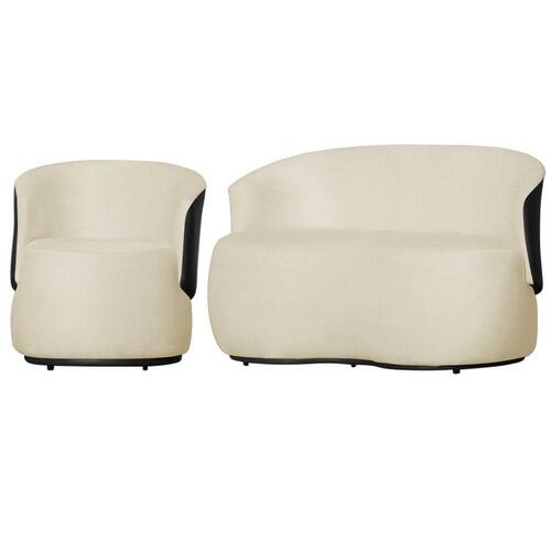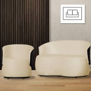 Kit 1 Namoradeira e 1 Poltrona Orgânica Beatriz Suede Composê Corino Preto - Estopar - Bege Claro