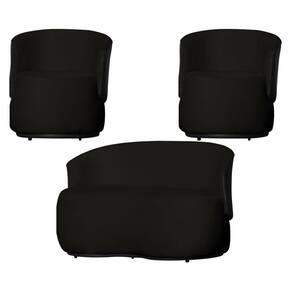 Kit 2 Poltronas e 1 Namoradeira Orgânica Beatriz Veludo Composê Corino Preto - Estopar