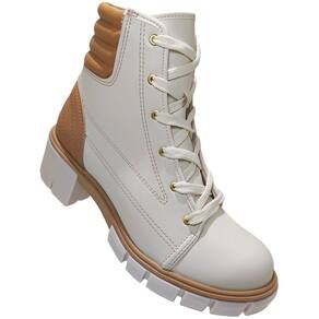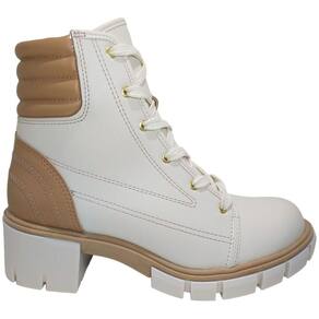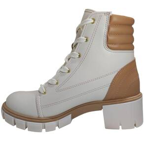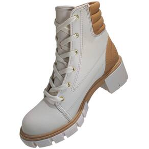 Bota Coturno Feminino Tratorado Salto Bloco Médio Moleca 5338.107 - 37 - Bege Claro